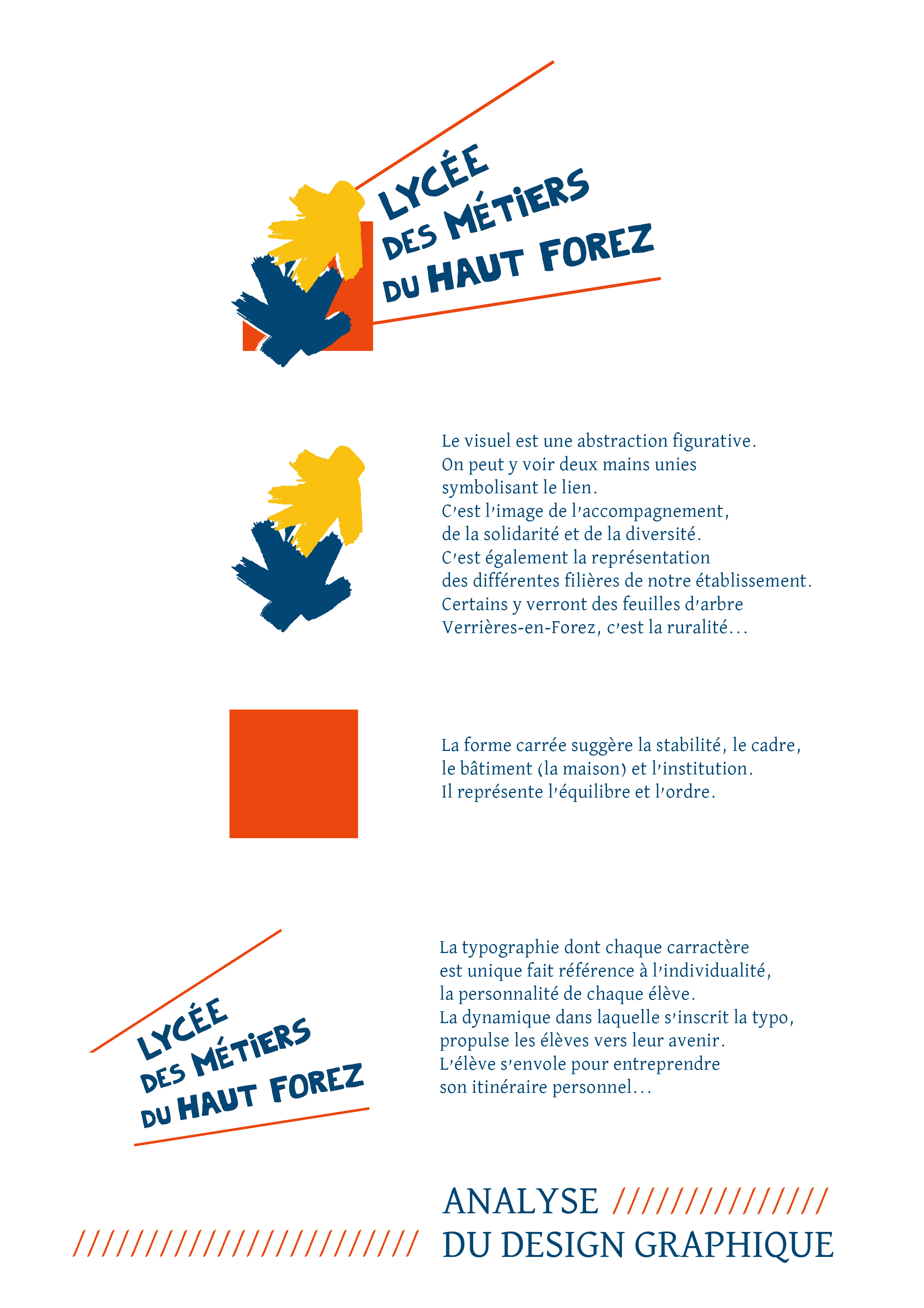 Le carré orange incarne la stabilité, le cadre institutionnel et l’équilibre de l’établissement.